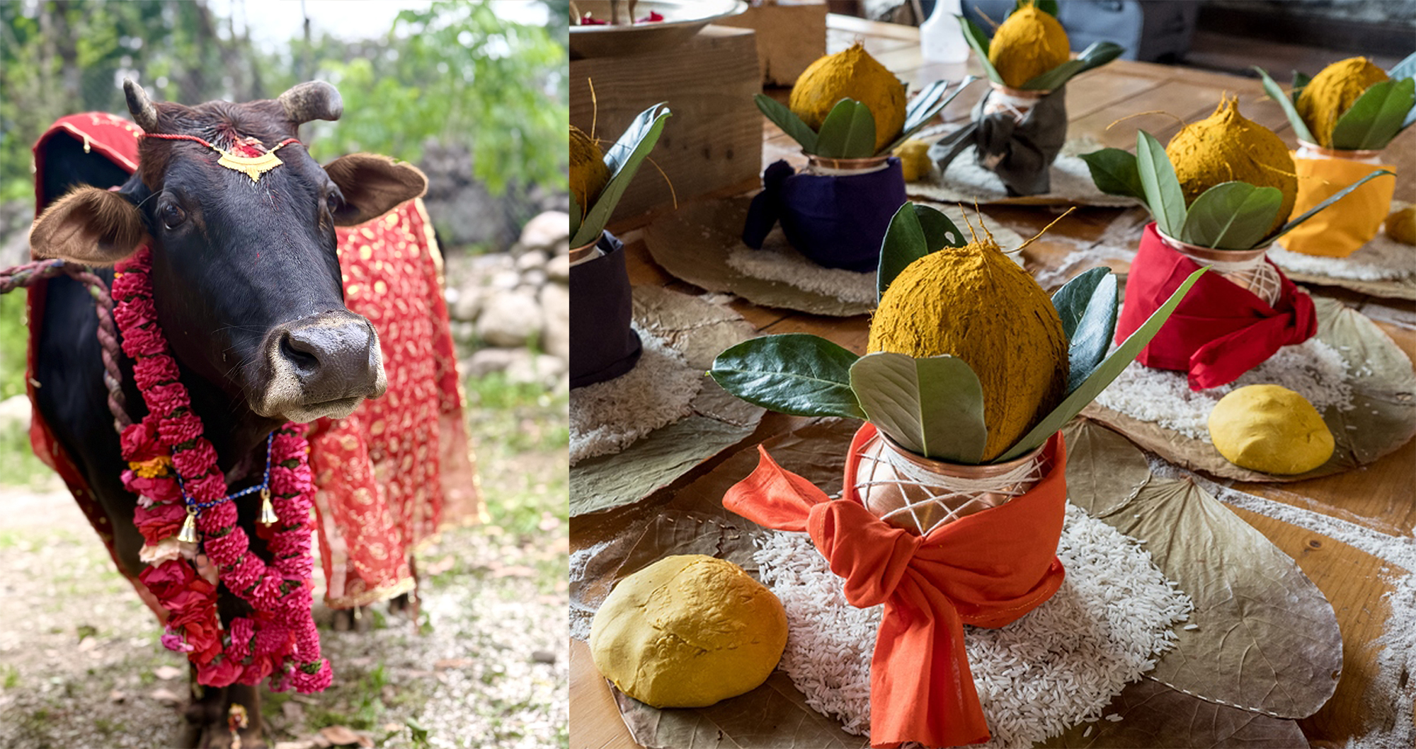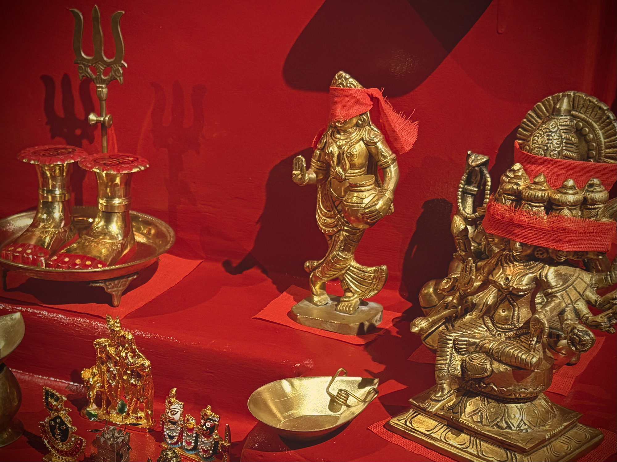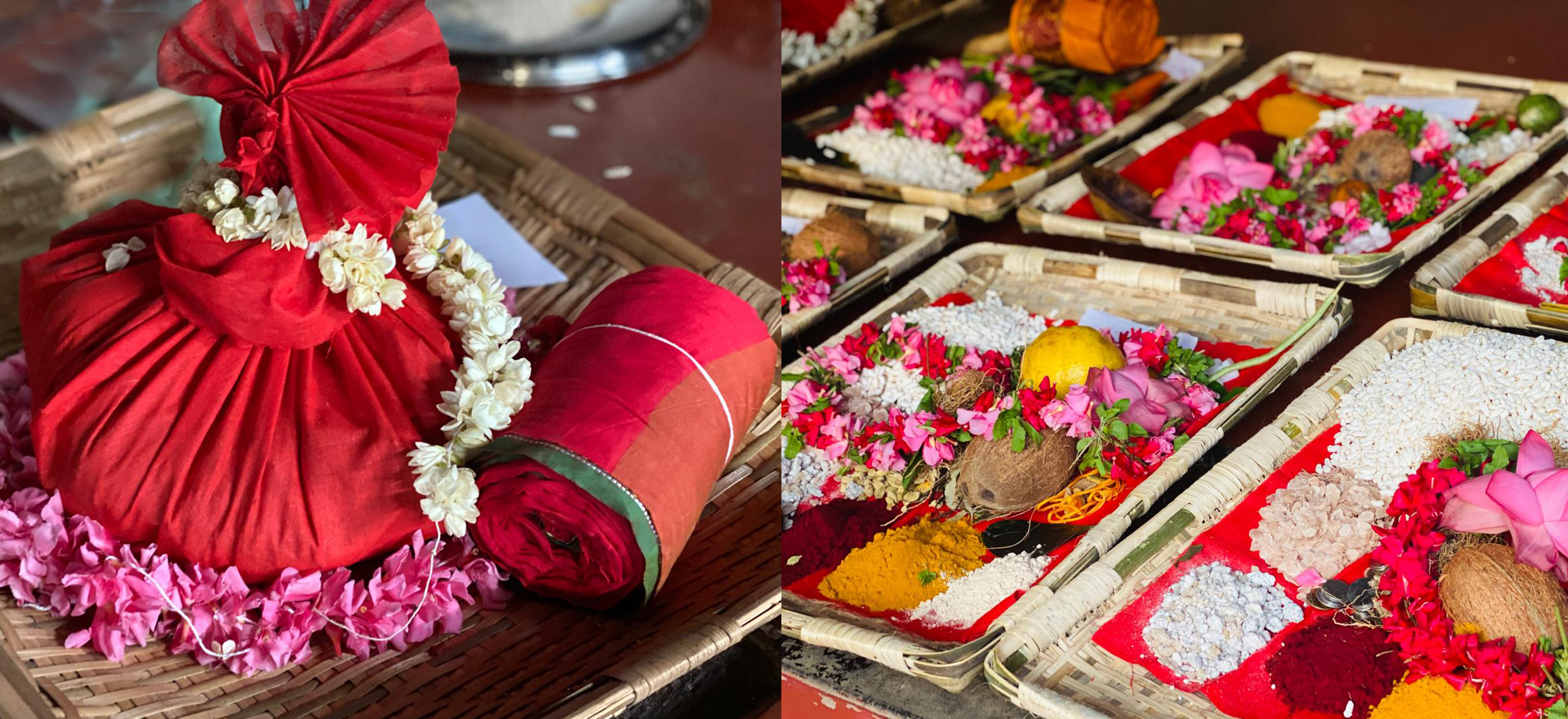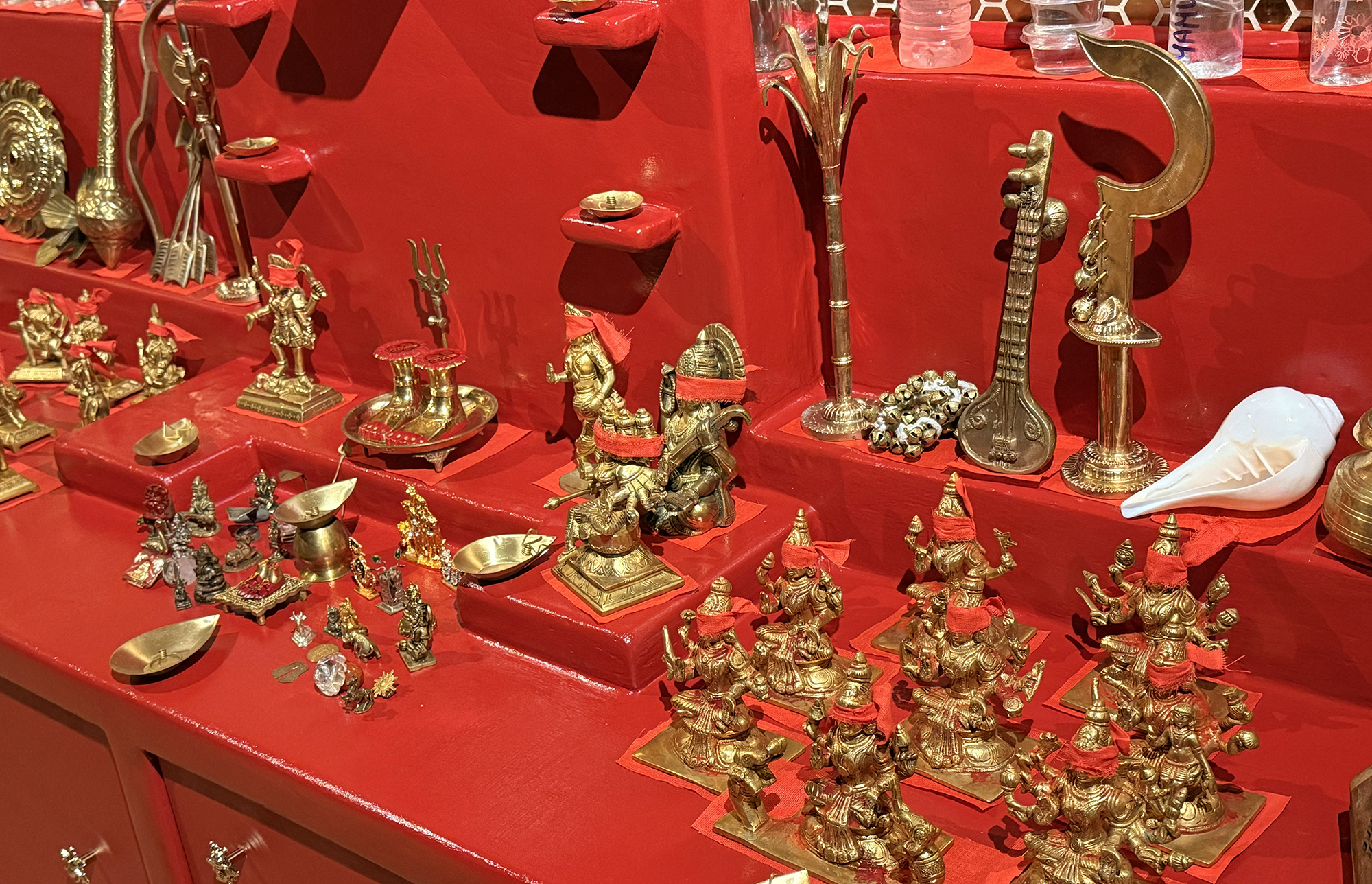 - Eau sacrée et rakta vastra de Mā Kamakhya : souhait mettant en marche la Conscience Immuable pour manifester la diversité du monde phénoménal
