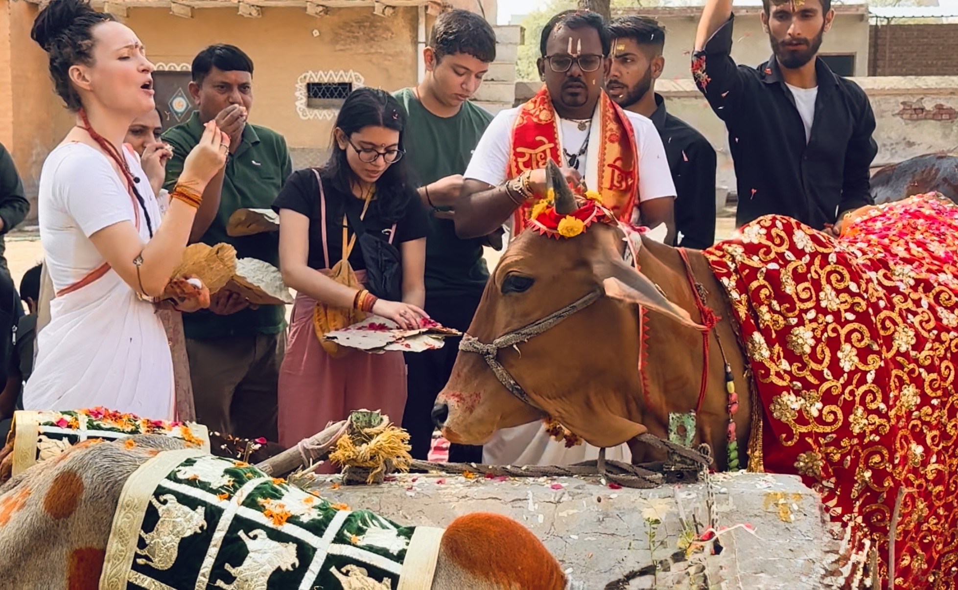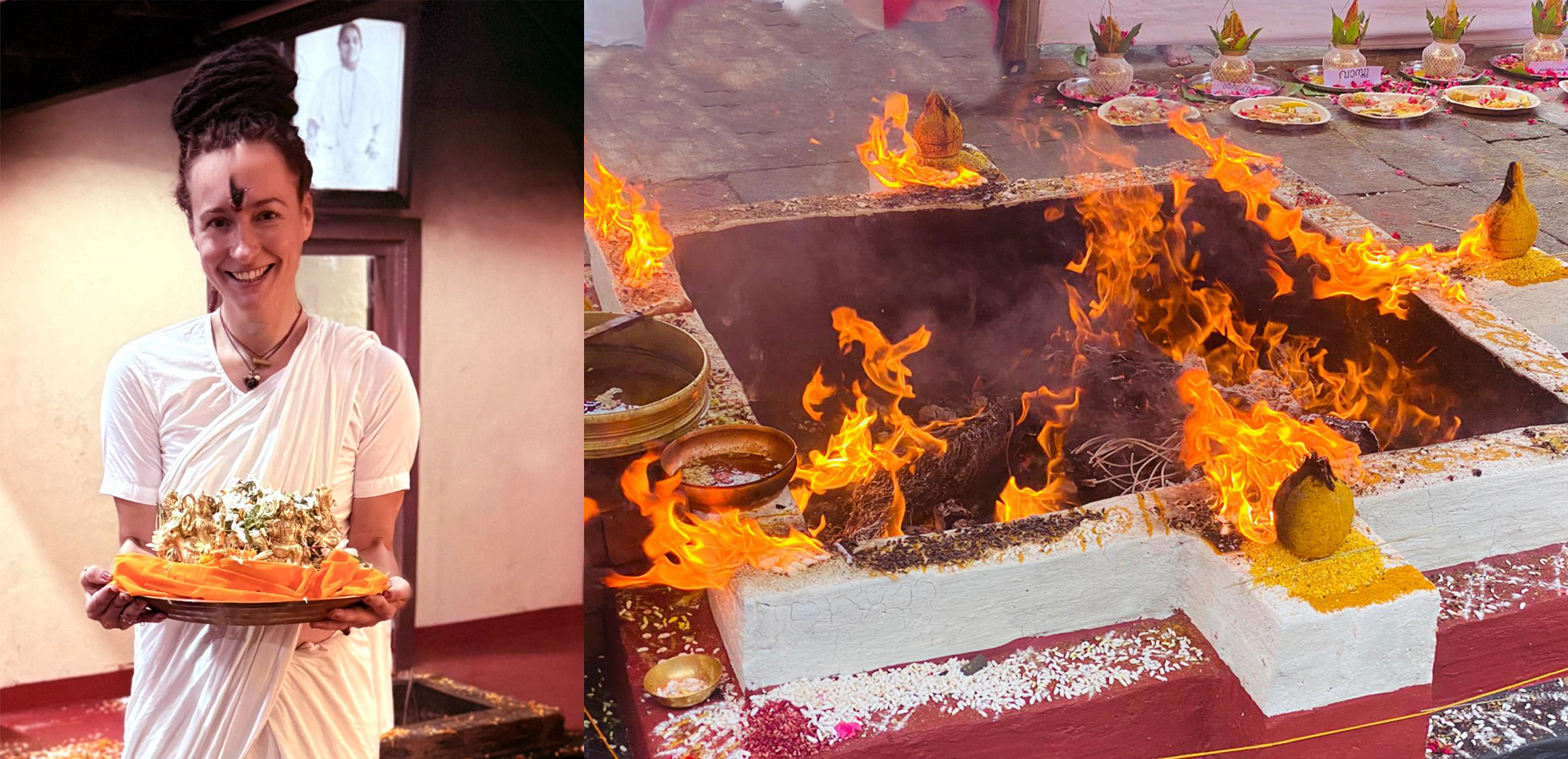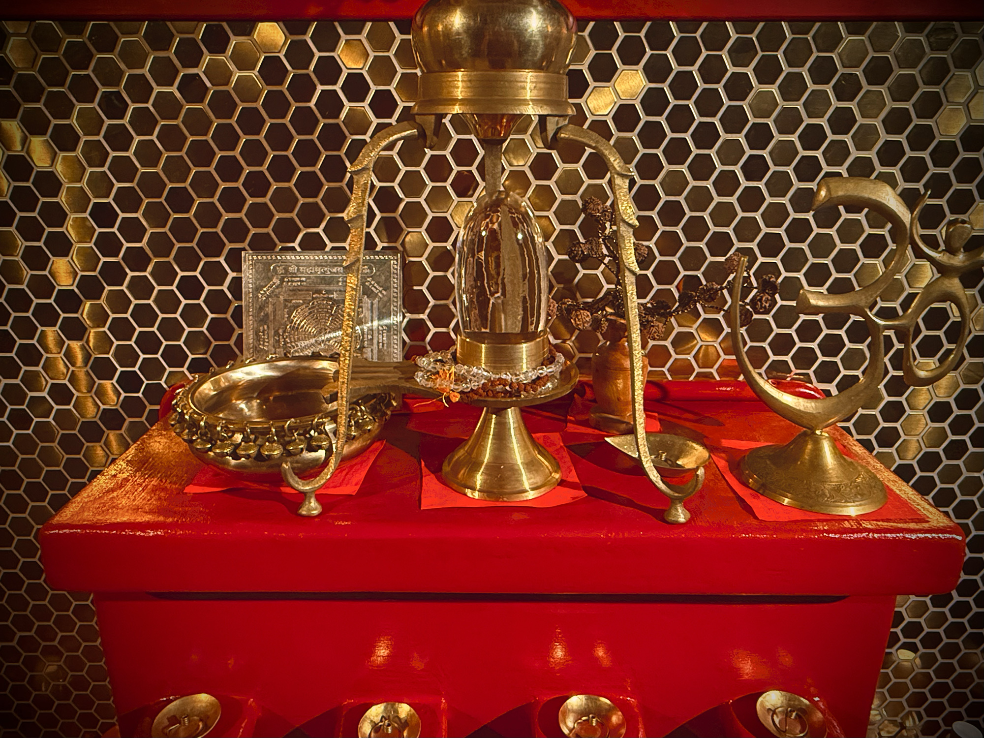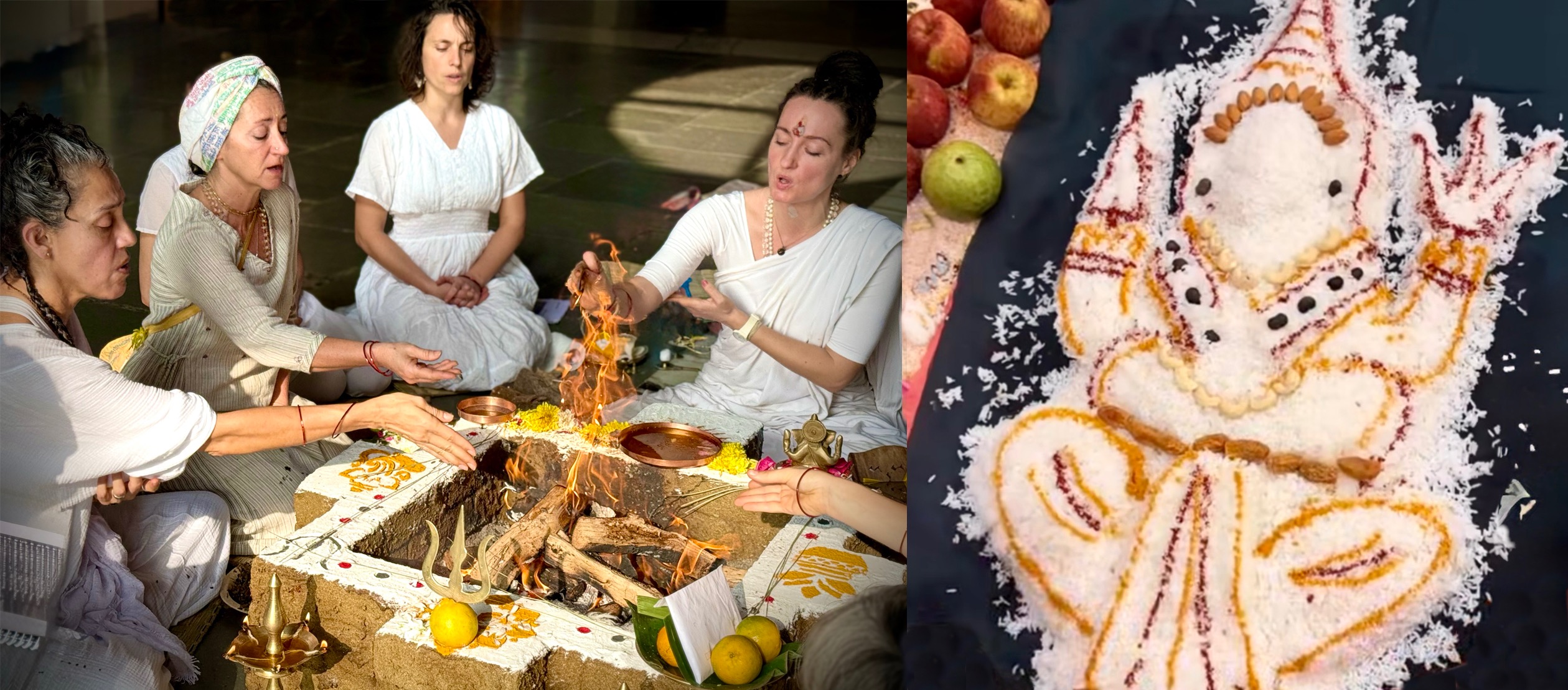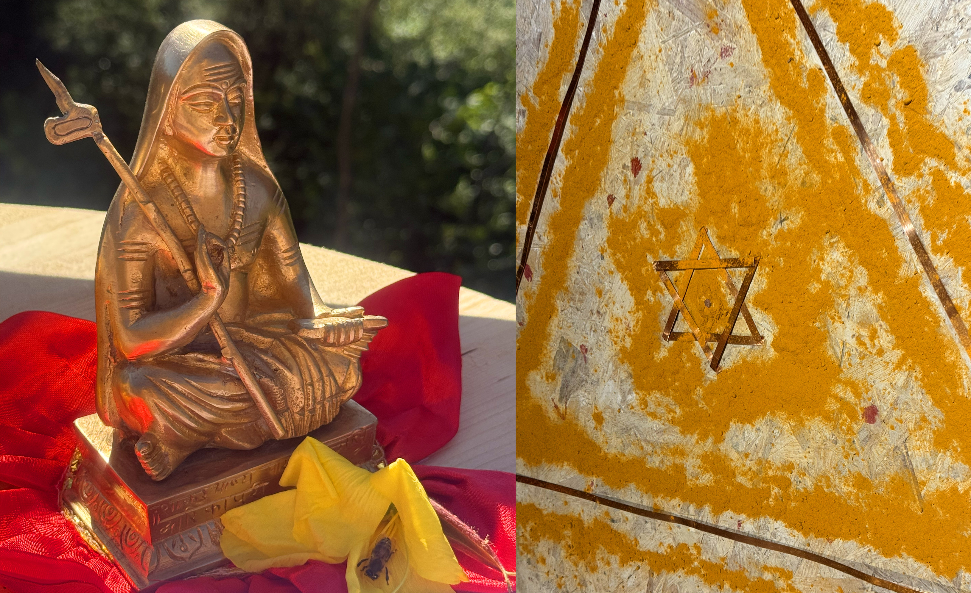 Dans le sol le yantra fondamental de Tantra est installé et recouvert de poudre de curcuma pour l'écartement des energies non-propices.